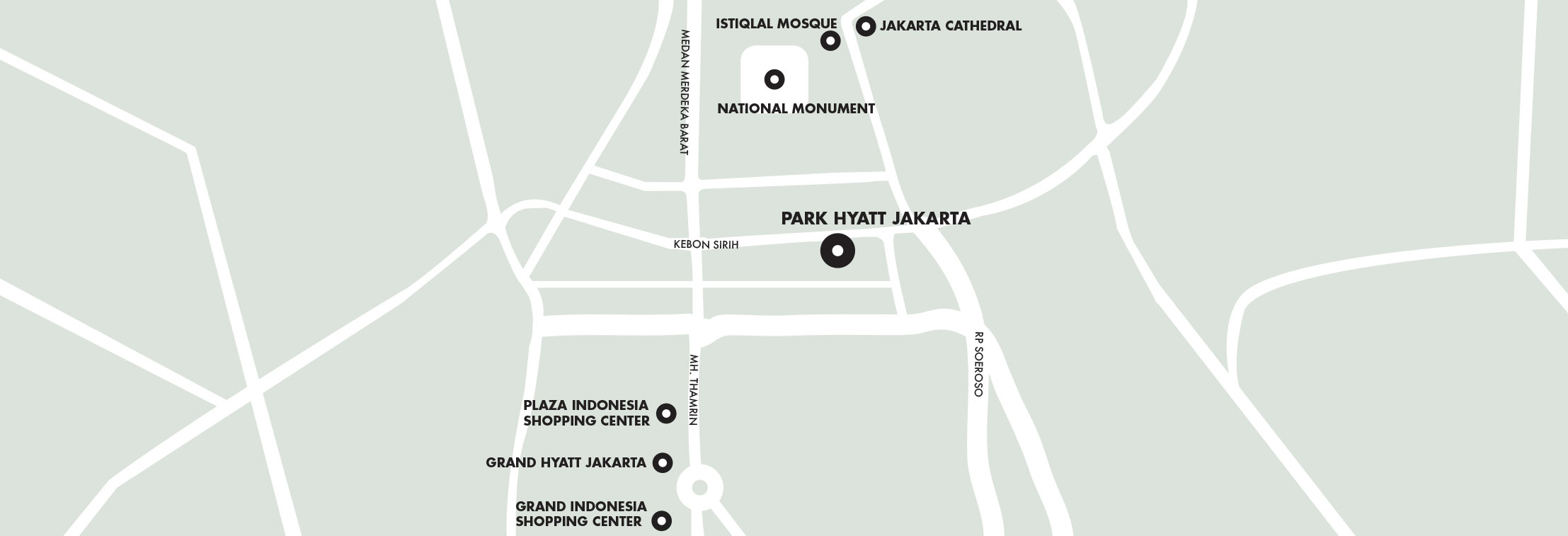 Follow Jl. C1, Jl. C2, and Jl. Raya Soekarno-Hatta Airport to Jl. Toll Prof. Sedyatmo, and Jakarta Inner Ring Road to Jl. Lieutenant General S. Parman in West Jakarta. Take the exit to Slipi / Palmerah / Tn Abang from Jakarta Inner Ring Road, take Jl. Brigadier Katamso / Jl. Slipi I, Jl. Jati Baru Raya, and Jl. Kebon Sirih to Jl. Srikaya in Central Jakarta and arrive at Park Hyatt Jakarta Jalan Kebon Sirih No.Kav. 17-19, RT.15 / RW.7, Kebon Sirih, Menteng, Central Jakarta, Special Capital Region of Jakarta 10340